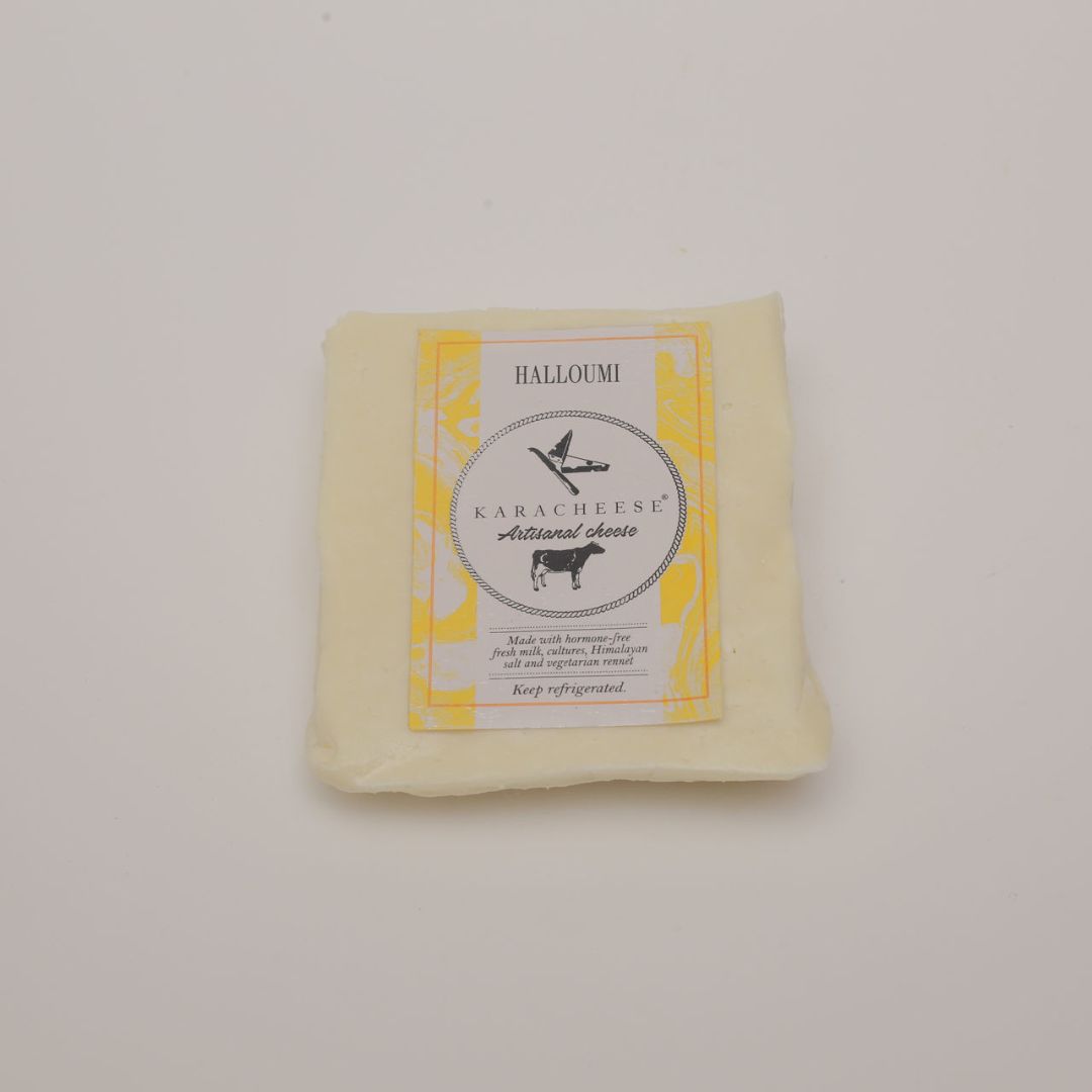 a salty and savoury taste and has a springy yet firm texture. Our Halloumi is salted using pure Himalayan rock-salt.