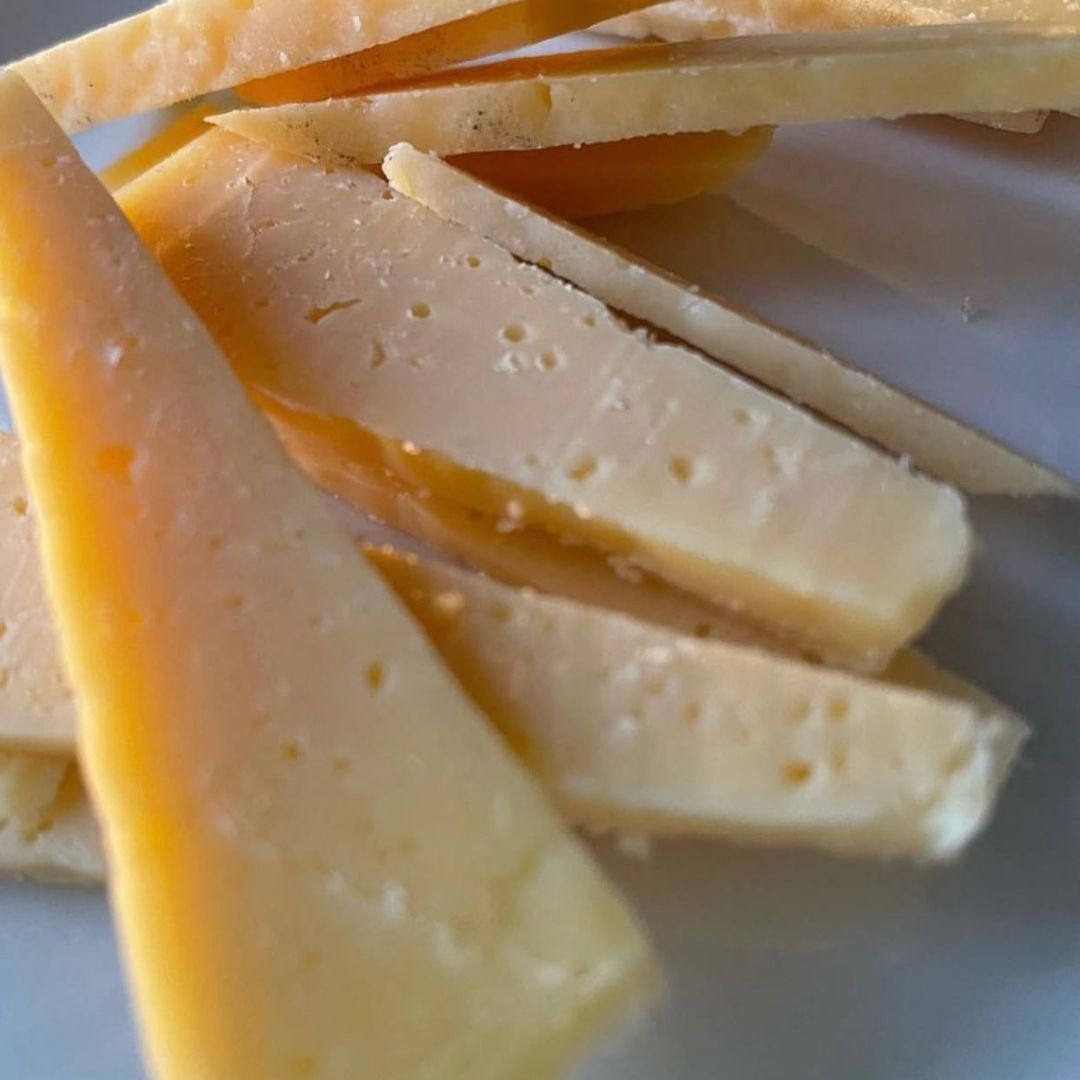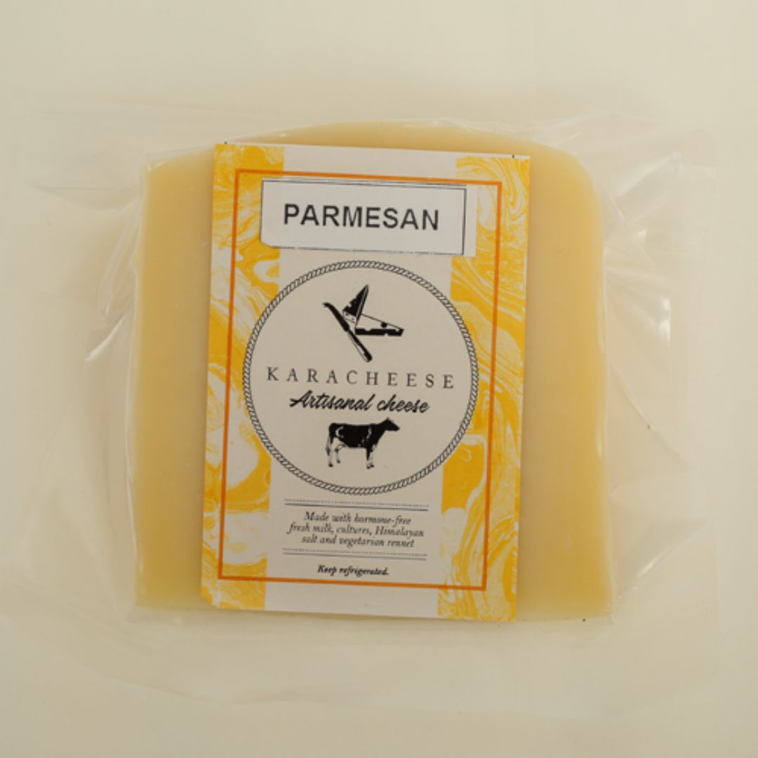 Parmesan is an Italian hard cheese that has a strong aroma, is grainy and dense in texture and has a savoury, fruity, nutty and sharp taste. We recommend it grated on top of pastas and pizzas!